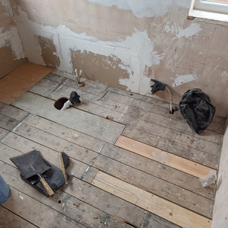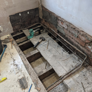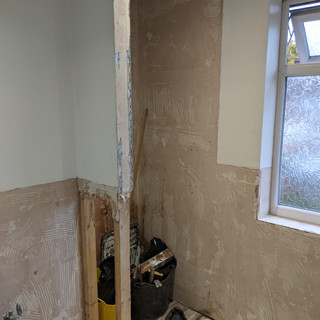 Midway through a large bathroom job. Some progress shots showing some of the details of the redesign. The shower enclosure wall had to be rebuilt, much of the plumbing altered and has to be exact before the tiles go on as there's no way to alter them after that.